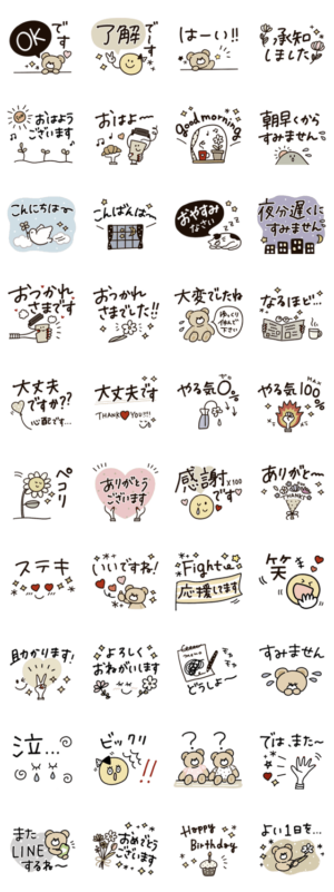 シンプルで大人可愛い日常で使いやすいスタンプです。 敬語入りで目上の方にも使いやすい♡yopink より発売