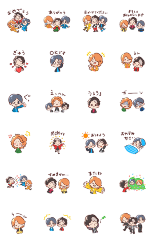 Mrs. GREEN APPLEのスタンプ。イラストになっているメンバーがとても可愛いです♪