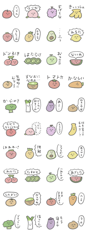 野菜と果物です。煽れます。日常の挨拶もあるよ。煽る/食べ物スタンプ/ネタ系/面白い系/毒舌/変なスタンプ/oroninetoroninet より発売
