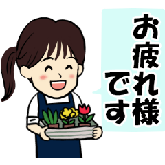 花屋さんで働く女性店員のラインスタンプ。お花や植物が好きなガーデニング好きさんにもおススメ。普段よく使う言葉や挨拶が敬語中心で接客にも便利。男性版もありますdokukinoko より発売