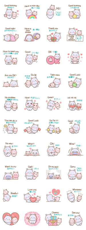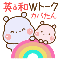 カバたんの「英語&日本語」のWトークスタンプです♪ 国内と海外に幅広く使えるので便利ですよ〜♫プリン より発売
