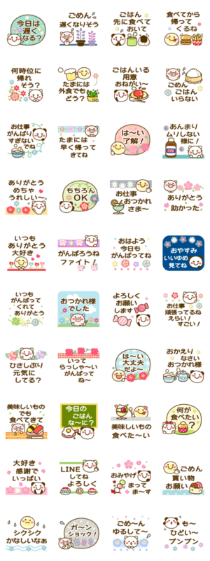 かわいい動物達の【もらってうれしい気持ちたっぷり】13 食べ物 花 長文スタンプです♪家族 友人とのやさしいやりとり 食事等の連絡に!パンダ ねこ ぶた❤作:usakazu1