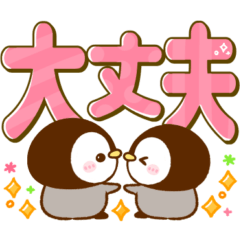 小さなペンギンの赤ちゃん♡ぺんぺんのとってもカラフルなデカ文字スタンプです。