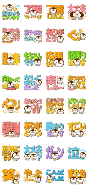 ペンギン♡ぺんぺん♡カラフル文字 スタンプ画像一覧