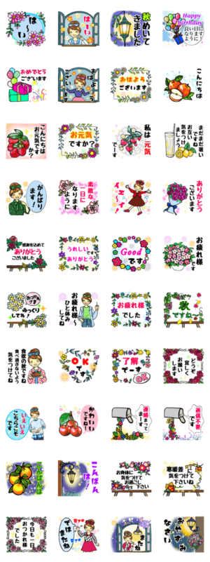 お花と大人可愛い女子、他色々♪使いやすい優しい言葉のスタンプです♪YURIKO より発売