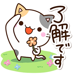 『ちびミケ』の【絵文字】と【着せかえ】もあります!ちいさい三毛猫の、元気にかわいくお花多めに返事ができるネコスタンプ。かわいいみけねこ好きな方にぜひ。【かたこ】かたこ より発売