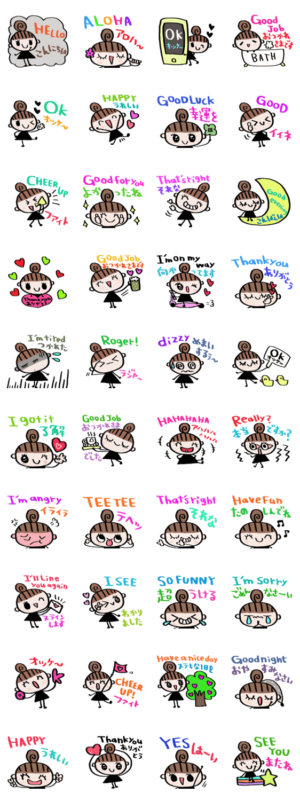 シンプルな日常会話スタンプです。日本語&英語スタンプnenerin より発売