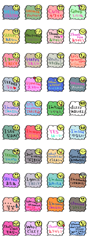 シンプルな日常会話スタンプです。日本語&英語スタンプnenerin より発売