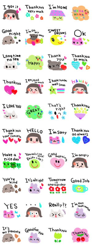 シンプルな日常会話スタンプです。英語スタンプnenerin より発売