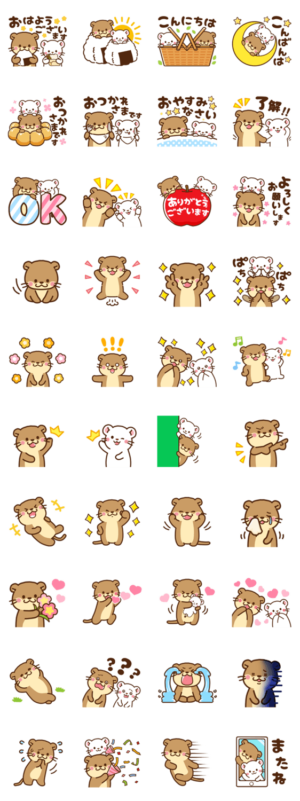 カワウソ&オコジョの基本でシンプルなスタンプ。挨拶/ かわいい/面白い/ハート/大人/女の子/恋人/挨拶/丁寧語/友達/敬語/家族/仕事/冬/家族