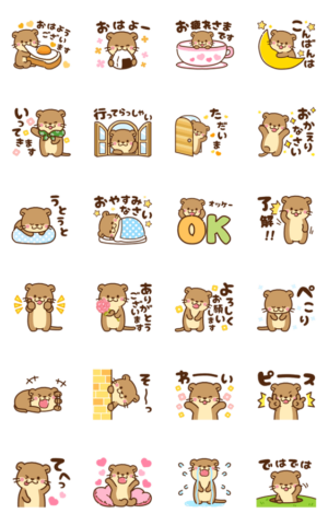 カワウソの動くアニメーションスタンプ。毎日の日常で使える挨拶などのシンプルなデザイン かわいい/面白い/ハート/大人/女の子/恋人/挨拶/丁寧語/友達/敬語/家族/仕事Haruna より発売