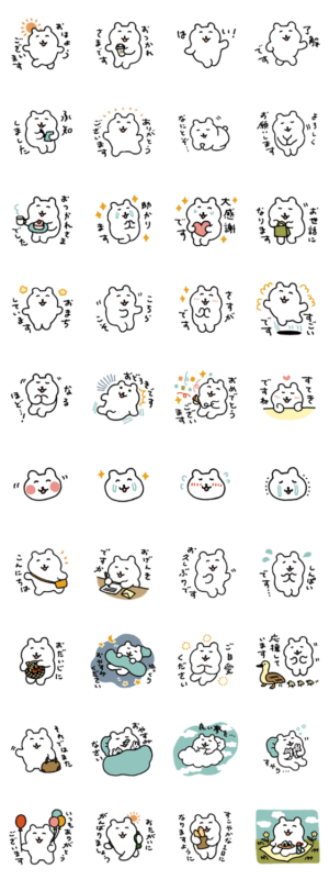 やさしい気持ちで おだやかに 今日もげんきに ごあいさつ… すこやかな日々を目指して生活するしろくまのスタンプです。 毎日使える敬語の挨拶フレーズを集めました。かわしまさき より発売