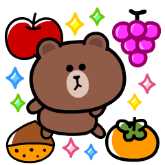 ブラウンとサリーの楽しい秋スタンプ!秋の食べ物がいっぱいのかわいい動くスタンプです♪
