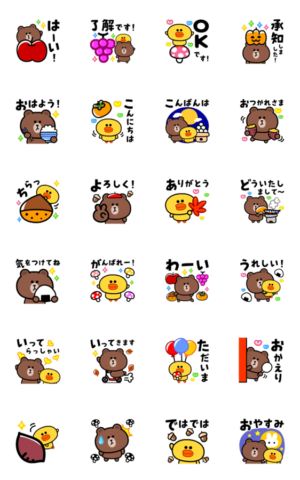 動く!ブラウン&フレンズの楽しい秋 スタンプ画像一覧