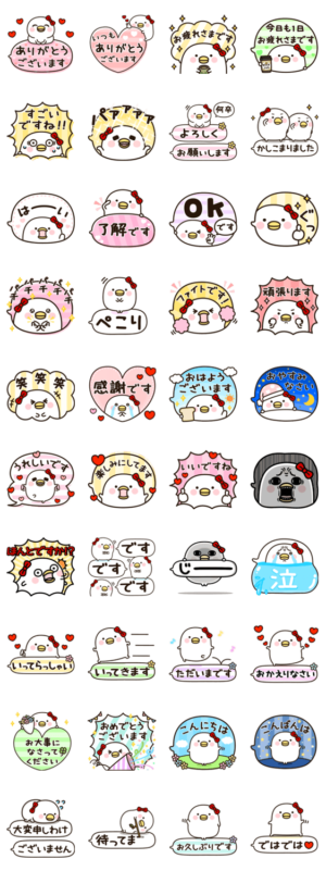 うるせぇトリの彼女の吹き出し敬語多めスタンプです。mame&co より発売