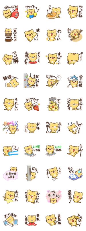 虎の応援スタンプ。ちびとらが可愛く応援して励ましたり、気持ちを表現できます。普段の会話やメッセージでも使えます。トラやネコが好きな方にぜひ。【かたこ】とらほーかたこ より発売