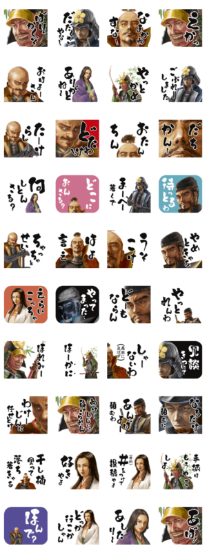 バリバリコテコテの岐阜弁を話す五武将と姫君たちが大集合。コワモテで高圧的なのになんだか和む、岐阜弁スタンプの決定版です。