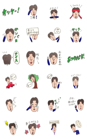 おしり頭のサラリーマンぱぱのスタンプです。「気楽に話せる同僚」や「家族」に送る時に大活躍すること間違いなし!ラッパーさん より発売