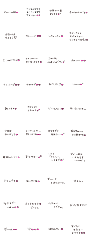 カップルのためのスタンプ。普段は恥ずかしくて言えない言葉もスタンプで可愛く甘えちゃおう♡ 彼氏/彼女/恋愛/告白/デート/いちゃいちゃ/あざとい/シンプル/手書き文字