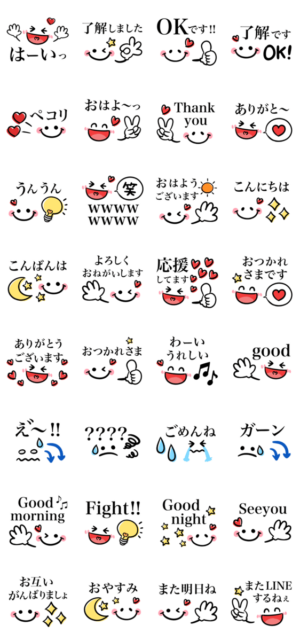 伝わるハンドサインとシンプル顔文字スタンプ♪ 毎日使いやすい!シンプルスタンプ♡ みんな使える無難な日常言葉セットです。かわいい/ハート/家族/BIGデカ文字ちゃぴ より発売