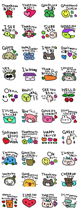 シンプルな日常会話スタンプです。日本語&英語スタンプ
