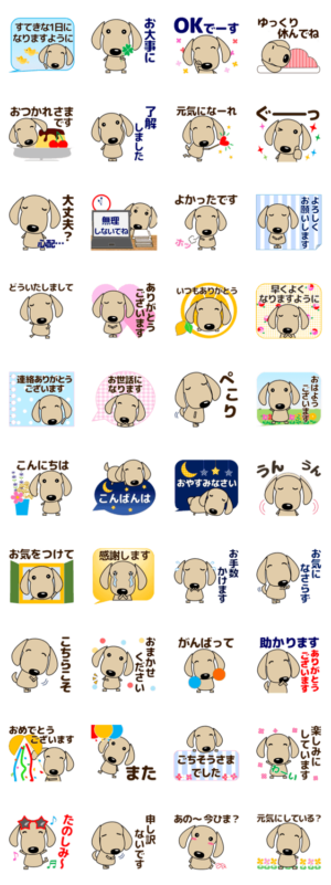 犬好き、ダックスフンド好きな方に。優しい気持ちがつまった日常会話に使いやすいゆるいスタンプ。敬語。字が見やすくシンプル。おつかれさま、よろしく、ありがとう等。光成 佳子 より発売