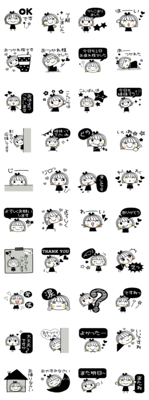 モノトーンで敬語の可愛いスタンプです。RIRIKA より発売