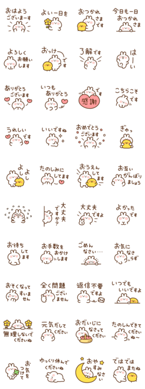 うさたまの、敬語・丁寧な言葉をセットにした、相手を気遣うやさしい言葉スタンプです。con より発売
