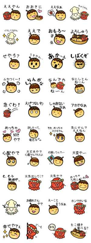 大阪弁 たこ焼き屋のたこやきちゃん スタンプ画像一覧