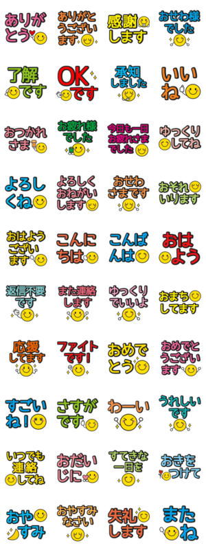 毎日使いやすい、カラフルなでか文字スタンプです。シンプルで大人可愛い、敬語中心のスタンプです。HRYs より発売