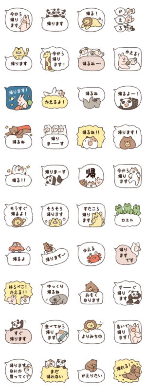 毎日の「今から帰るよ」をふきだしで、ゆるい動物たちが伝えてくれます。その日の気分で使い分けて。こはるな より発売