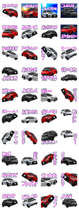 スポーツカーで日常会話のスタンプはいかがでしょうか。あさごはん より発売