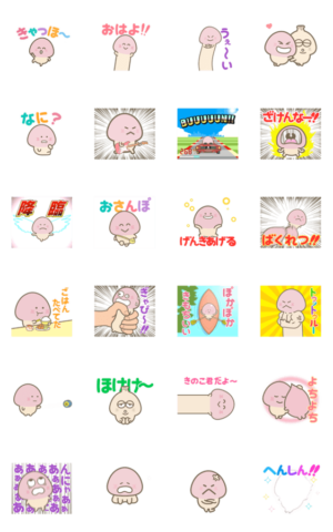 すべてのキノコ好きの皆様へ贈る、茸の妖精“きのこ君”のアニメーションスタンプがついに登場!!きのこ君たちがヌルヌルと動きます。あひる より発売