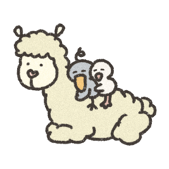 スタンプ第3弾です。今回のメインはお友達のアルパカの赤ちゃん。アルパカになりきったフラミンゴのアルちゃんとハシビロコウのグレくんも登場しています!