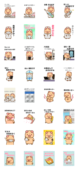 お医者さん、看護師さん、いつもありがとうございますぶ。 ※このスタンプはトークルームで大きく表示されるBIGスタンプです。みなみへきる より発売