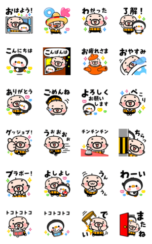 激しい動きのおやじ君とペンギンちゃんの飛び出すスタンプ。可愛い動きのキュートなスタンプです!