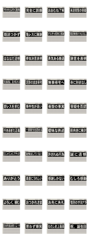 今日の出来事・今週のインパクト、あのニュースをいち早くお知らせしたい時に使うスタンプです 新聞、ニュースのあるある見出し・言葉の数々、LINEの新聞記者 特派員に捧ぐ