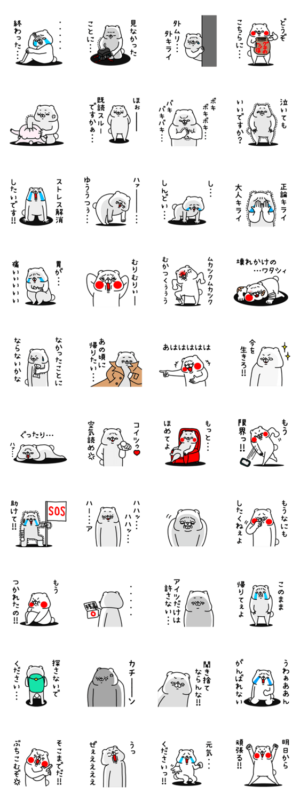 全力でうざい全力でおちょくるあざとかわいいくまのストレスがたまってヘラっています。誰か助けてください。膨大な仕事、人間関係で悩む胃が痛いあなたに捧ぐスタンプ。
