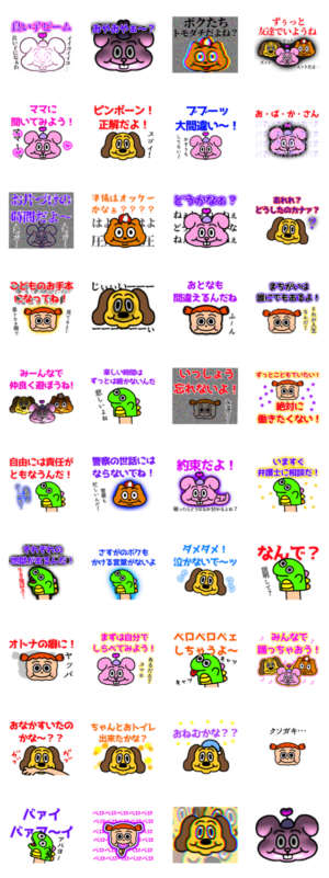 幼児向け番組のみんな風スタンプです。日常/子供/大人/恐怖/シンプル/可愛い/煽りバブルガム より発売