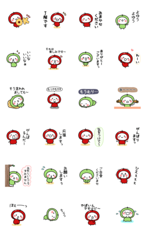 ▶動く!ちびまろのりんごと梨の着ぐるみ スタンプ画像一覧