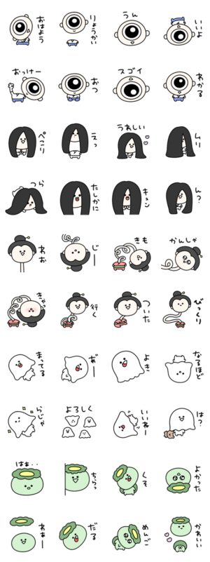 めんどくさそうでシュールなミニおばけのスタンプです。eribo より発売