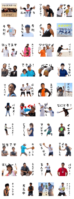 フレスコボール選手の、フレスコボール選手による、フレスコボール選手のためのスタンプ。フレスコボールは、 2人でラリーを続けるブラジル生まれのビーチスポーツです。