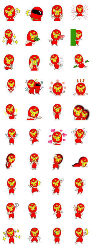 テキスト無しで使いやすい毎日使える赤いマスクをかっぶたレスラーのスタンプです。かずみ より発売