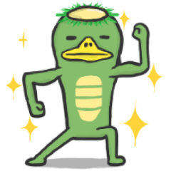 毎日使える緑の河童。基本のあいさつから文字なしのどっちつかずずの喜怒哀楽の感情表現。お礼と感謝やとりあえずの返信に使えるスタンプです。