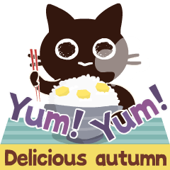 動く!大人かわいい絵本の猫 おいしい秋英語 スタンプ情報