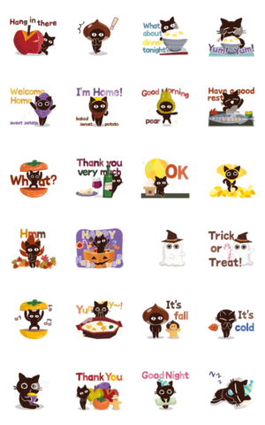 動く!大人かわいい絵本の猫 おいしい秋英語 スタンプ画像一覧