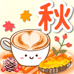秋のフルーツやスイーツに彩られたシンプル可愛い大人のデザインです。大きい文字の挨拶スタンプで、応援や気遣い言葉が多めです。キャラなしで癒やしの雰囲気で作りました