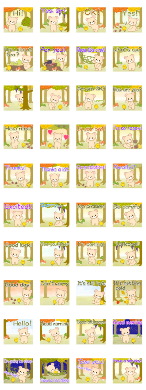 なかよしクマぴよ 秋の森(英語版) スタンプ画像一覧
