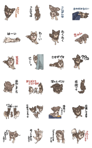 日常会話でよく使う会話・返事のスタンプです! チワワのノアちゃん、レアちゃん、モアちゃんがモデル。ゆなかい より発売