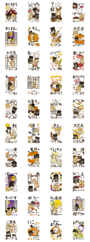 茶色い犬のちゃちゃ丸と仲間たちの秋です。 ※このスタンプはトークルームで大きく表示されるBIGスタンプです。藤花 より発売